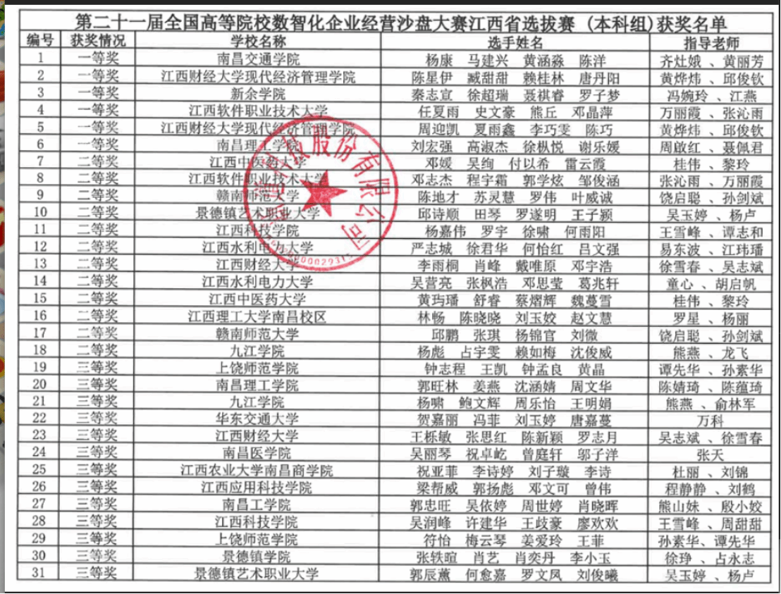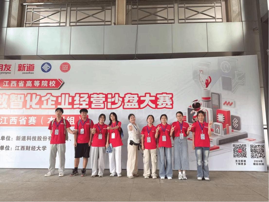 9月12-13日,,第二十一届全国高等院校数智化企业经营沙盘大赛江西省选拔赛在江西财经大学举行。共有32所高校,63支队伍、250名学子同场竞技。最终,我校经济管理学院学生代表1队(队员秦志宣、罗子梦、徐超瑞、聂祺睿,指导教师:冯婉玲、江燕)脱颖而出,荣获本科院校组一等奖。自赛事启动以来,在学校的有力指导下,经济管理学院迅速组建备赛团队,开展为期2周的集中赛前培训。参赛的4位选手专业基础扎实、实践经验丰富,分别模拟企业营销总监、财务总监、人力总监、生产总监等企业经营管理者的身份。比赛中,他们精准研判市场趋势,灵活调配资源,科学制定战略,从容应对复杂多变的经营场景,凭借默契的团队协作与出色的临场发挥,团队赢得评委高度认可,为学校摘得荣誉。据悉,本次大赛以“实战”为导向,深度融合专业知识与岗位技能,旨在培养学生创新思维、团队协作及数智化应用能力。管理学院积极组织师生主动参与,为参赛学生提供精细化指导,通过竞赛活动与专业知识、岗位技能相融合,优化提高项目质量,培养学生创新能力和动手能力,不断提升学生核心竞争力和人才培养质量。