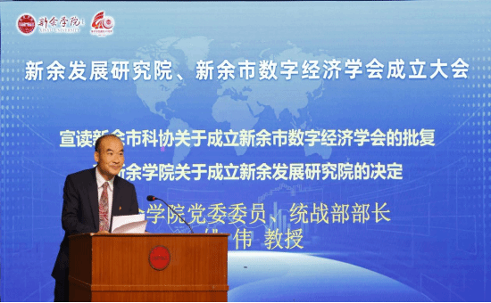 在庄重的氛围中,新余学院党委委员、统战部部长姚伟同志宣读了《新余市民政局关于同意新余市数字经济学会成立登记的批复》和《新余学院关于成立新余发展研究院的决定》。两份文件的正式宣读,标志着两大致力于服务地方发展的智库与平台就此扬帆起航。