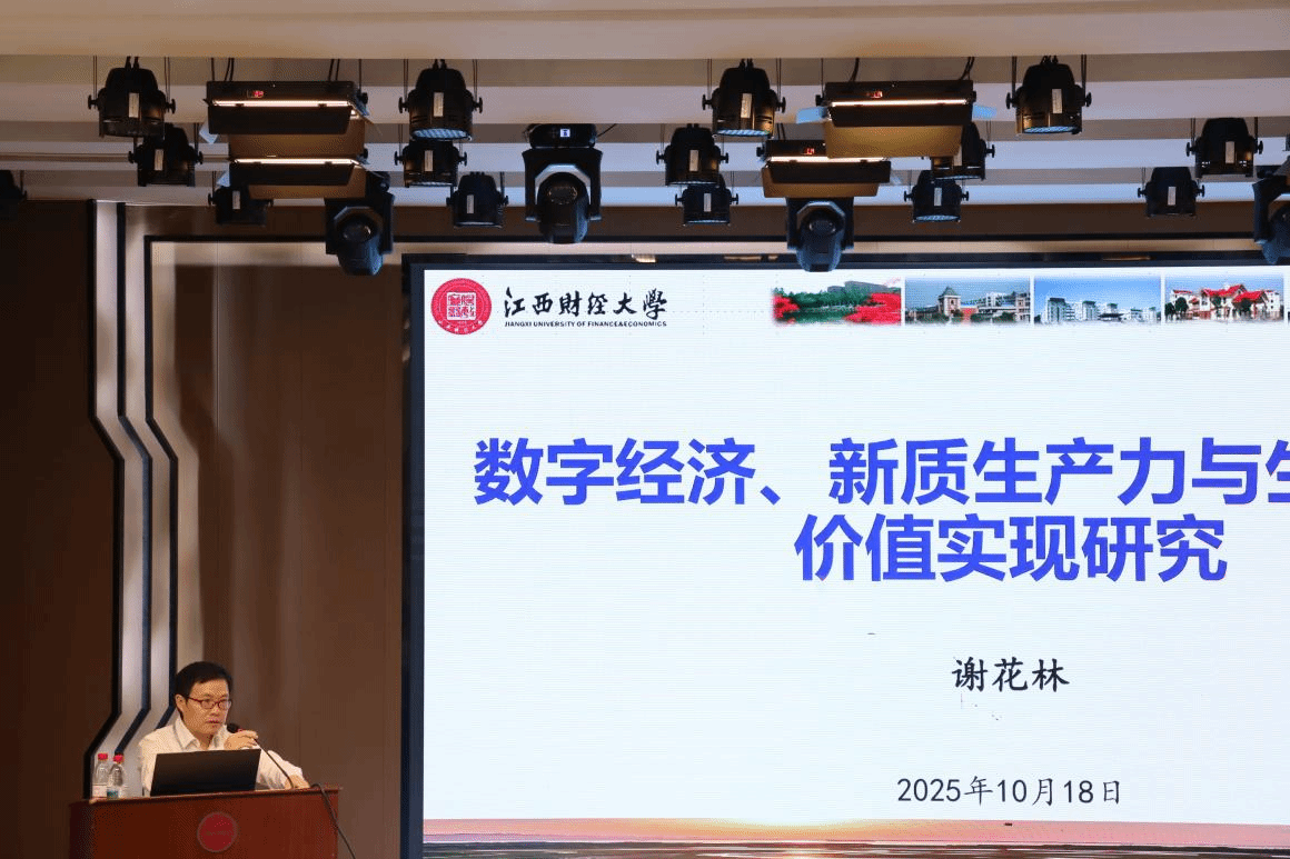 在大会主题报告环节,江西财经大学谢花林教授以“数字经济、新质生产力与生态产品价值实现”为题,从数字经济的内涵与特征、新质生产力的内涵与特征和数字经济赋能生态产品价值实现三个方面进行了精彩分享。
