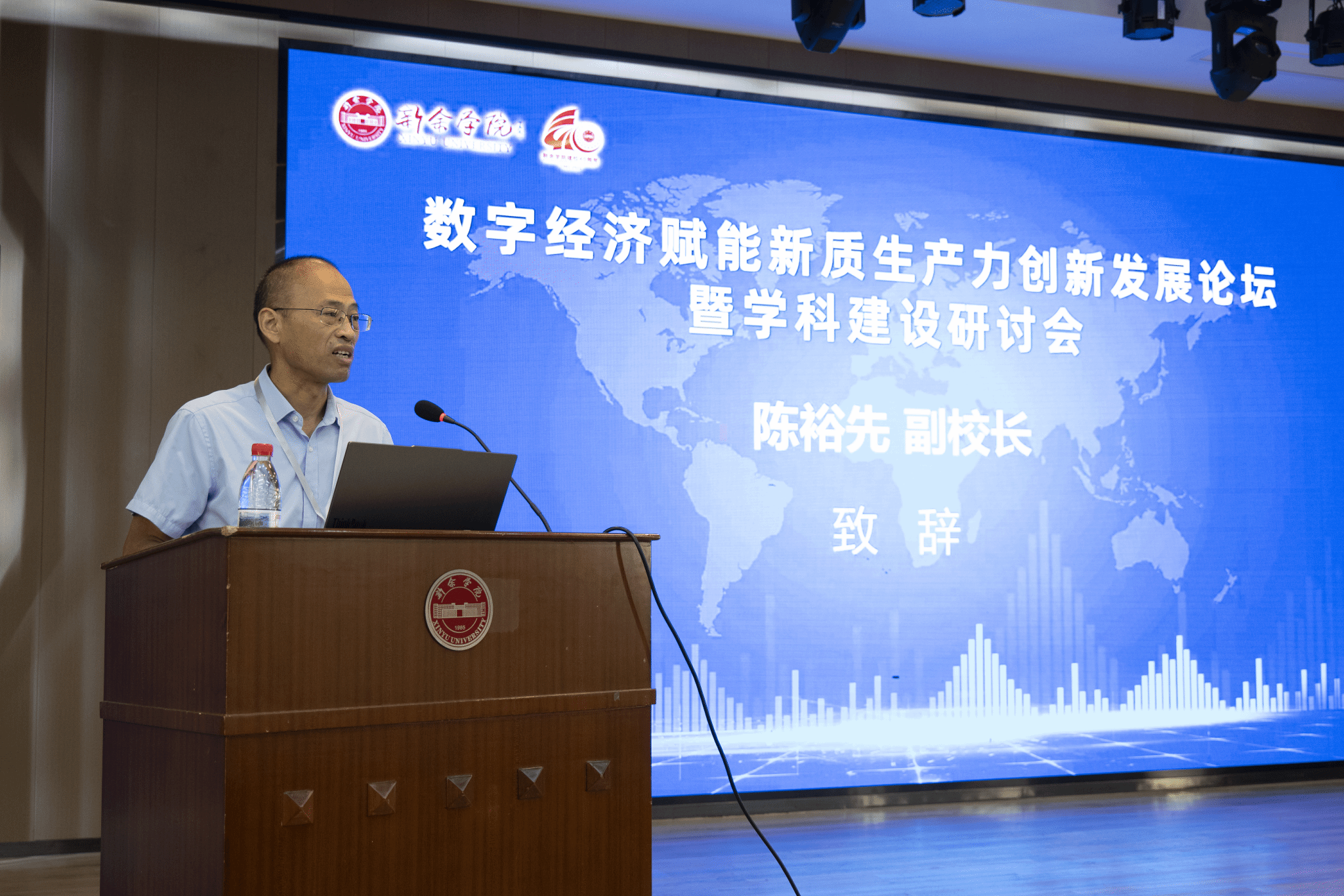 本次论坛聚焦数字经济赋能新质生产力的创新路径及文科专业数字化转型的前沿动态,共设置4场大会主题报告和1场圆桌论坛,校党委委员、副校长陈裕先出席会议并致辞。专家学者、高校嘉宾代表、有关政府部门、我院师生代表共计120余人参加了此次会议。