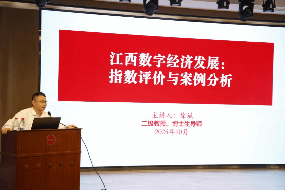 南昌师范学院徐斌教授以“江西数字经济发展:指数评价与案例分析”为题,深入剖析江西数字经济发展指数、典型赛道,以及江西加快发展新质生产力的整体路径和新余市以数字赋能推动新质生产力发展的产业实践等方面。