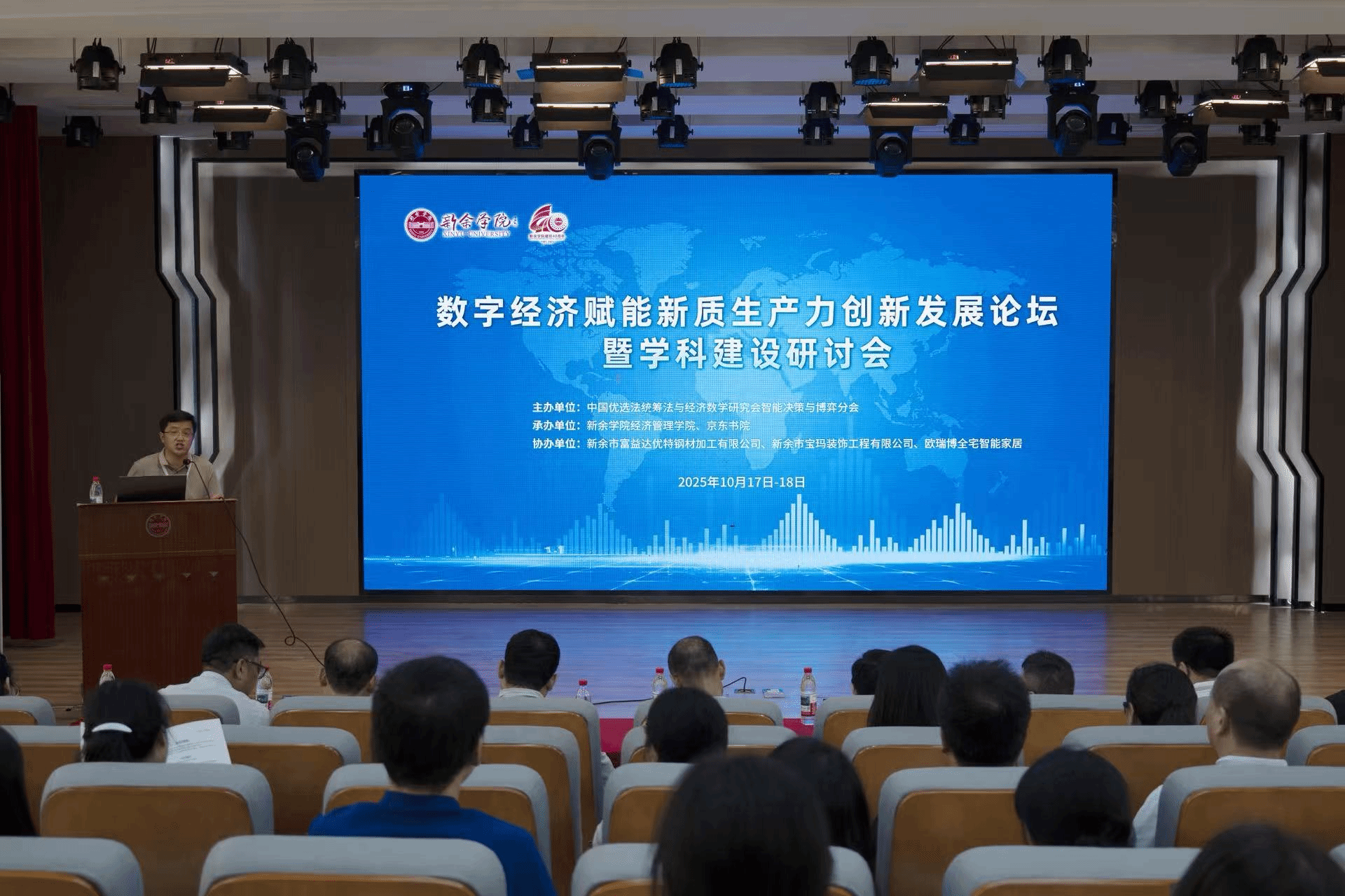 2025年10月17-18日,数字经济赋能新质生产力创新发展论坛暨学科建设研讨会在我院顺利召开。本次会议由中国优选法统筹法与经济数学研究会智能决策与博弈分会主办,新余学院经济管理学院、京东书院承办,富益达钢材、宝玛装饰、欧瑞博智能协办。