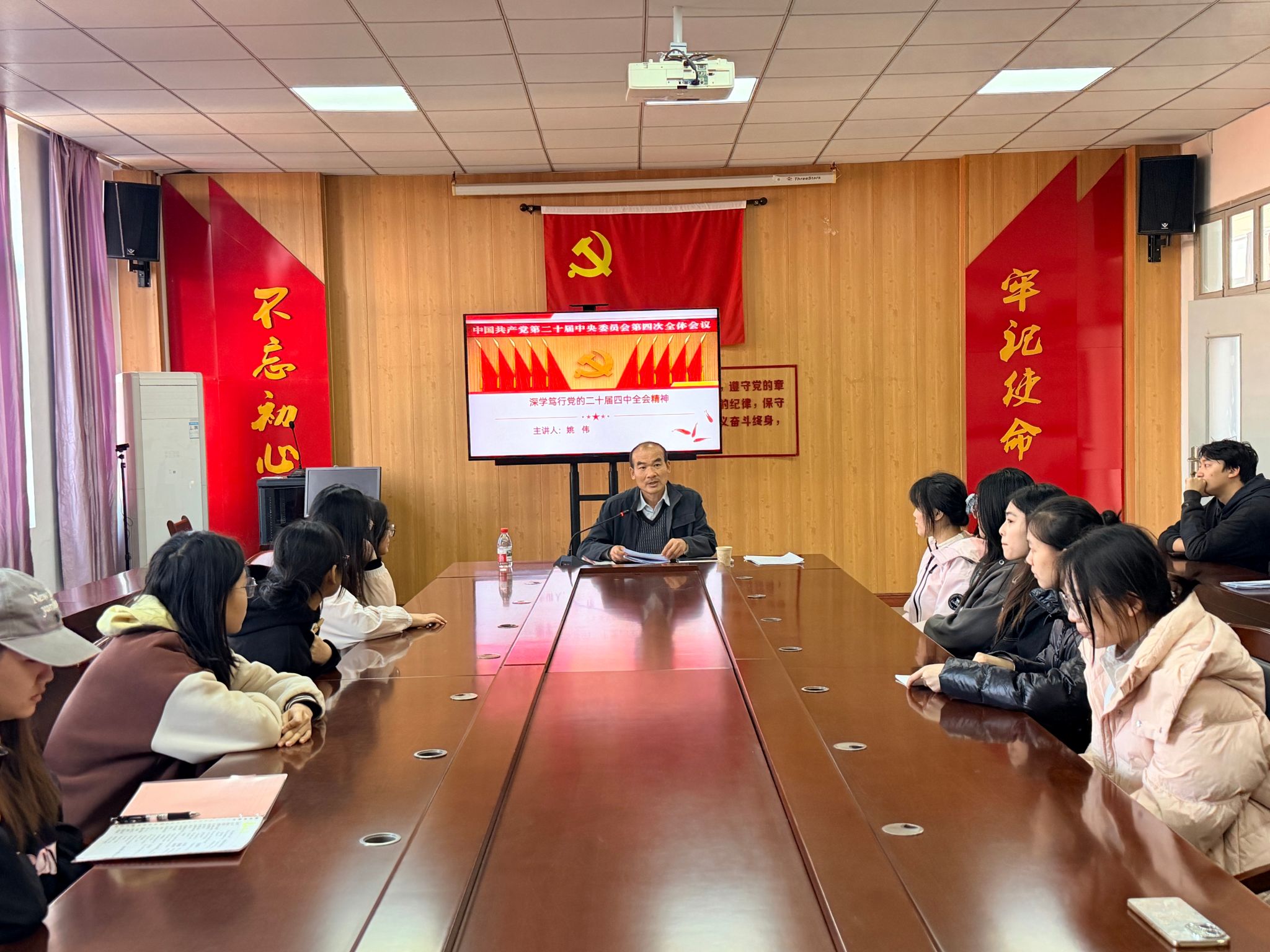 为深入学习贯彻党的二十届四中全会精神,引导青年学生骨干准确把握国家发展蓝图,11月21日下午,校党委委员、统战部部长姚伟在经济管理学院文A308党员活动室,为经济管理学院学生党员及入党积极分子代表作专题宣讲。