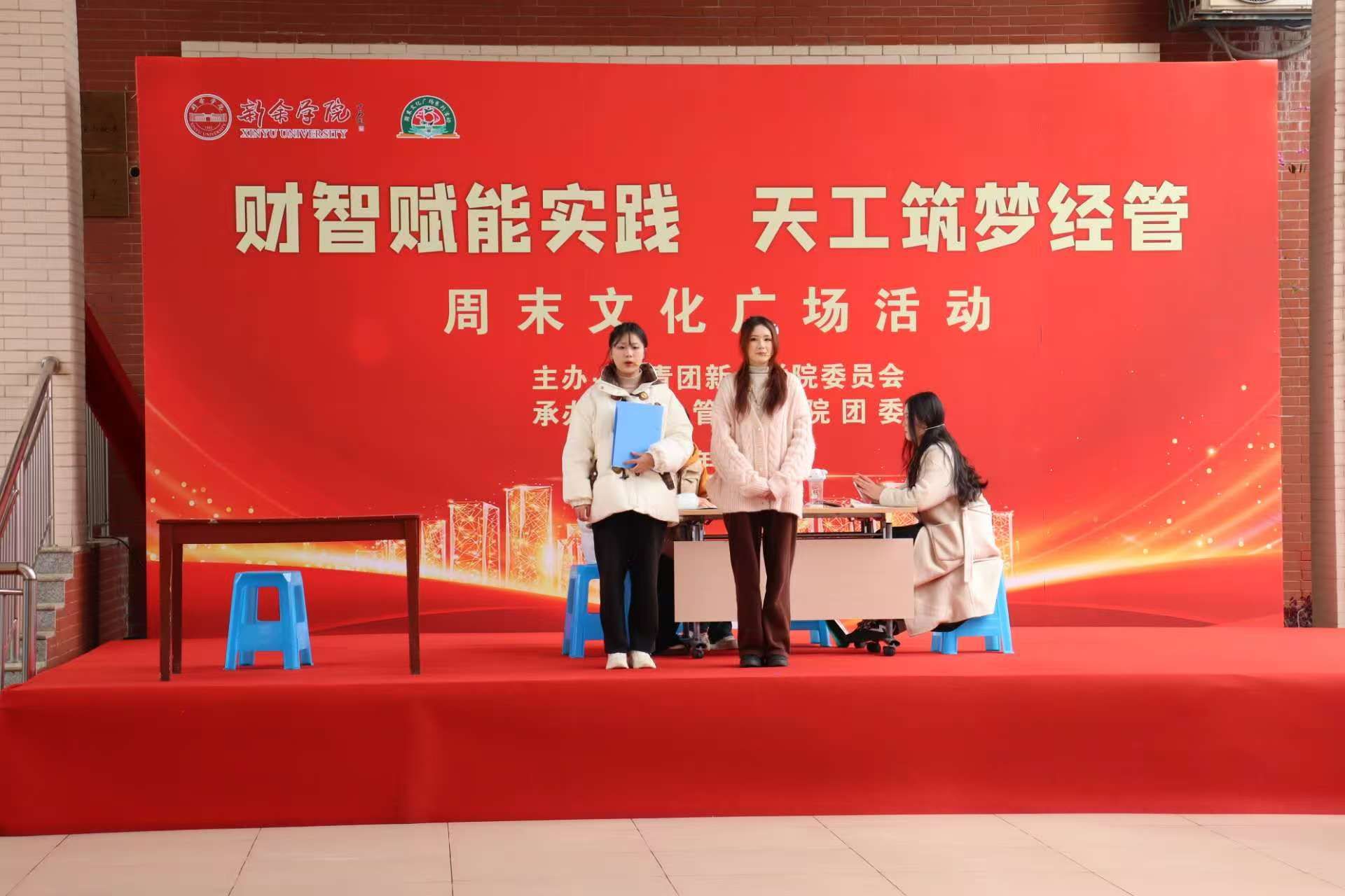 2026年3月21日中午,由校团委主办、经济管理学院承办的“财智赋能实践 天工筑梦经管”周末文化广场活动在理A-理B连廊处顺利举行。校党委委员、副校长黄益宾,宣传部部长钟钺,经管学院院长王茂洋、经管学院党委书记刘捡平、党委副书记张海琨,以及校团委老师杨万勤等约计400余师生共同参加活动。